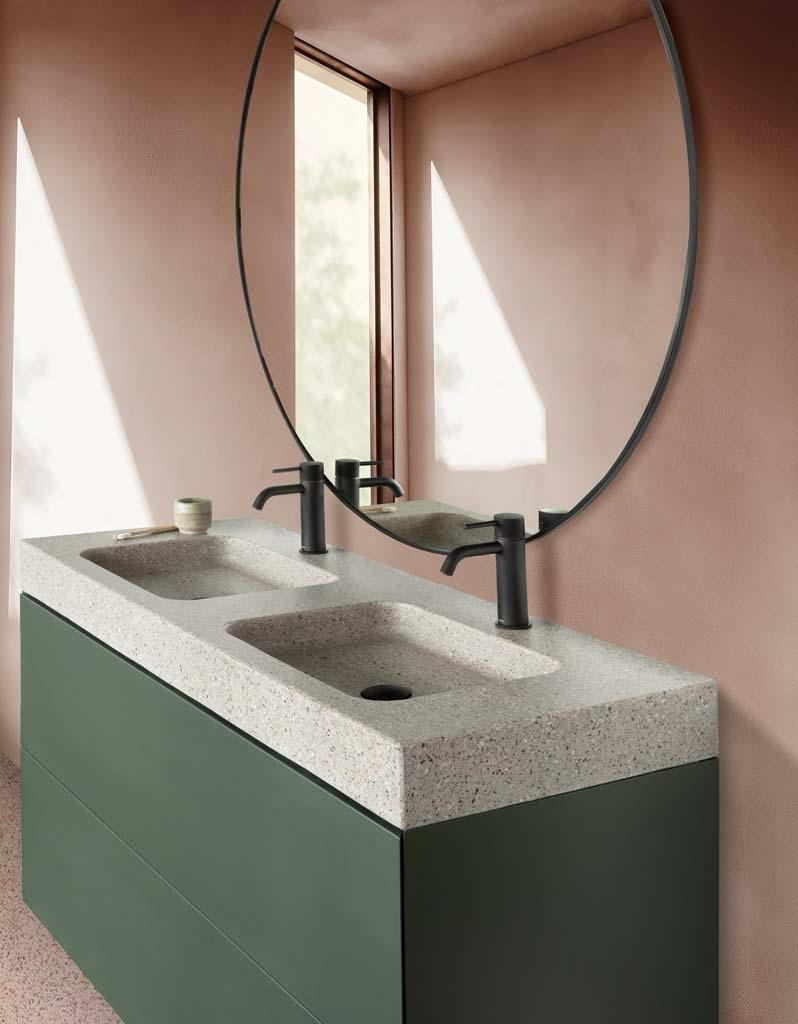 Wastafel Terrazzo Product omschrijving Nieuw in ons assortiment! Wastafels van Terrazzo. Een prachtig alternatief op de standaard witte wastafels. Voordelen: Vlekvrij Lichtgewicht Hittebestendig Onderhoudsvriendelijk Authentieke uitstraling Materiaal: Terrazzo, een mengsel van cement, marmerkorrels en andere materialen zoals glas, metaal of graniet. Afmetingen: Op maat verkrijgbaar. Bijzonderheden: Leverbaar met een maatwerk meubel. Zoekt u een staand…