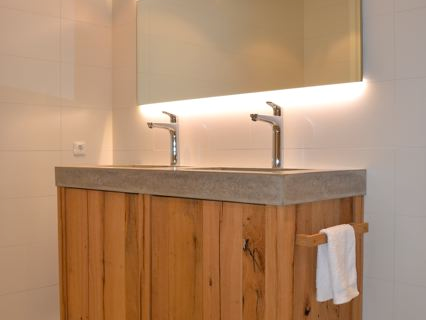 maatwerk badmeubel van beton en eikenhout